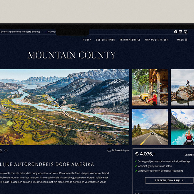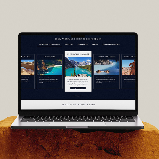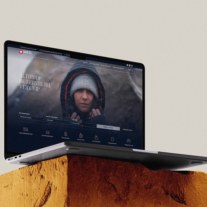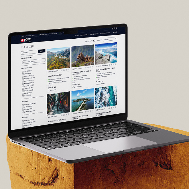We ontwierpen en ontwikkelden een vernieuwde website die reizigers direct onderdompelt in de wereld van Doets Reizen - warm, overzichtelijk en vol inspiratie. De vernieuwde structuur en vormgeving brengen het unieke Doets-gevoel digitaal tot leven en versterken de beleving van elke bestemming. De nieuwe huisstijl is doorgevoerd in banners, e-mailcampagnes en andere communicatiemiddelen, waardoor het merk op alle kanalen herkenbaar en consistent is. Daarnaast realiseerden we een doordachte inrichting van Google Tag Manager met een helder trackingplan voor datagedreven marketing.