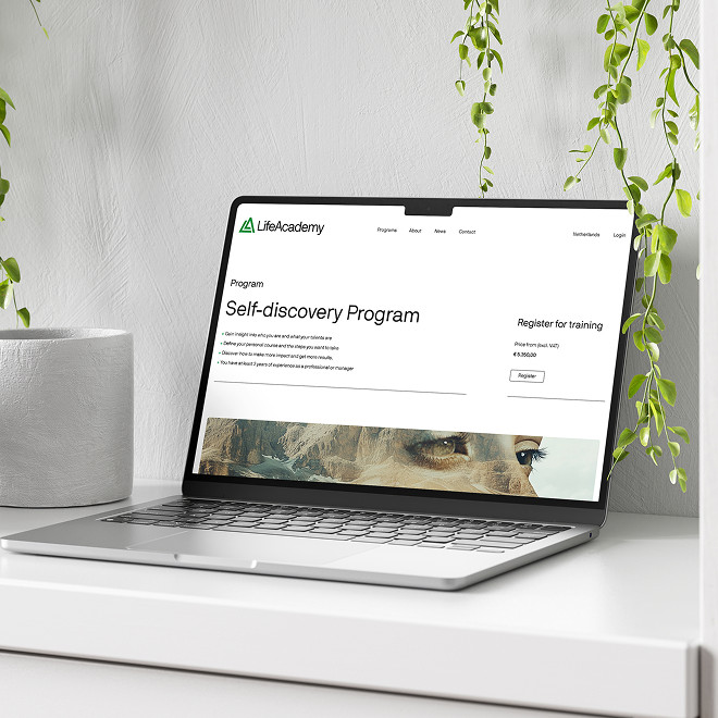 We ontwikkelden een complete merkidentiteit die de kern van Life Academy weerspiegelt: groei, balans en menselijkheid. Van logo en kleurenpalet tot typografie en beeldstijl - alles ademt rust, vertrouwen en inspiratie. Op basis daarvan realiseerden we een moderne, toegankelijke website met een sterke SEO-strategie en heldere contentstructuur. De site is stijlvol, gebruiksvriendelijk en volledig voorbereid op Europese toegankelijkheidsrichtlijnen, zodat iedereen zich welkom voelt. Verder ontwierpen we een informatieve map die het verhaal van Life Academy tastbaar maakt, met ruimte voor programma-informatie en persoonlijke notities. Een samenhangend geheel dat de missie krachtig tot leven brengt en de merkbeleving versterkt: Learn. Grow. Share.