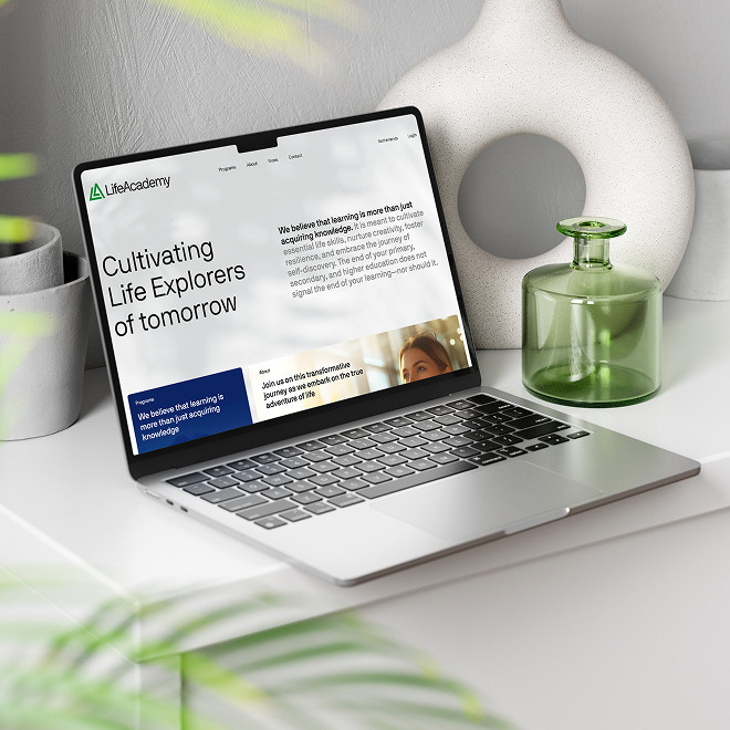 Life Academy wilde haar missie – leren voor het leven – vertalen naar een sterke merkidentiteit en overtuigende online presentatie. De uitdaging lag in het ontwikkelen van een visuele stijl die zowel professioneel als warm aanvoelt, en tegelijkertijd de balans vindt tussen onderwijs, persoonlijke groei en community. Het merk moest herkenbaar zijn voor jonge volwassenen wereldwijd, maar ook vertrouwen uitstralen naar partners en investeerders. Daarnaast was er behoefte aan een goed vindbare, toegankelijke website die de inclusieve waarden van Life Academy uitdraagt en ruimte biedt voor groei in content, taal en functionaliteit.