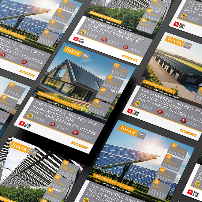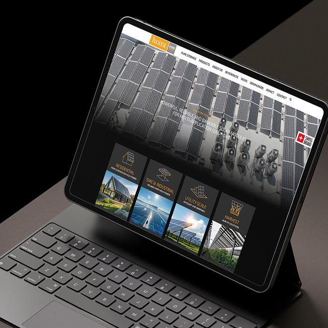 Luxra wilde haar positie als betrouwbare leverancier van high-quality solar modules versterken en uitbreiden naar de snelgroeiende markt voor commerciële batterijsystemen. Het merk moest zichtbaar maken waar Luxra voor staat: gegarandeerde output, lange termijn zekerheid en duurzame kwaliteit in elke schakel van de supply chain. Daarnaast vroeg Luxra om een professionele, tweetalige website die het complete productassortiment overzichtelijk presenteert en technisch vertrouwen wekt. De nieuwe identiteit moest bovendien breed toepasbaar zijn - van sales leaflets en beursmateriaal tot verpakkingen en video.
